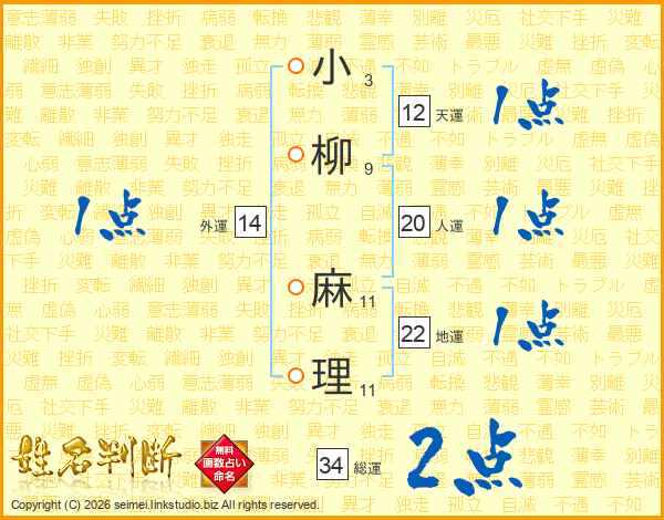 小柳麻理さんの総運は34画の2点!
