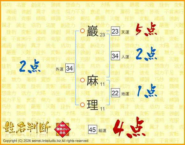巖麻理さんの総運は45画の4点!