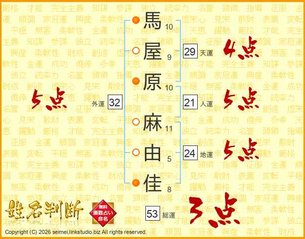 馬屋原麻由佳さんの外運は32画の5点!