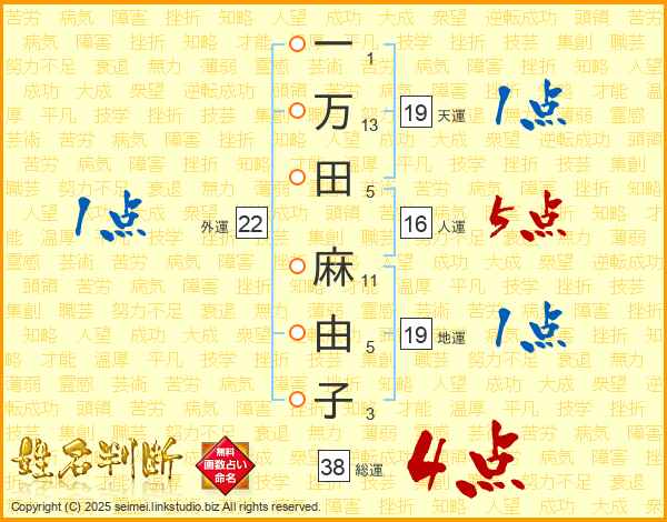 一万田麻由子さんの総運は38画の4点!