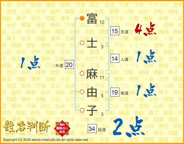 富士麻由子さんの総運は34画の2点!