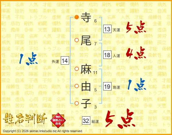寺尾麻由子さんの総運は32画の5点!