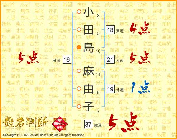 小田島麻由子さんの総運は37画の5点!