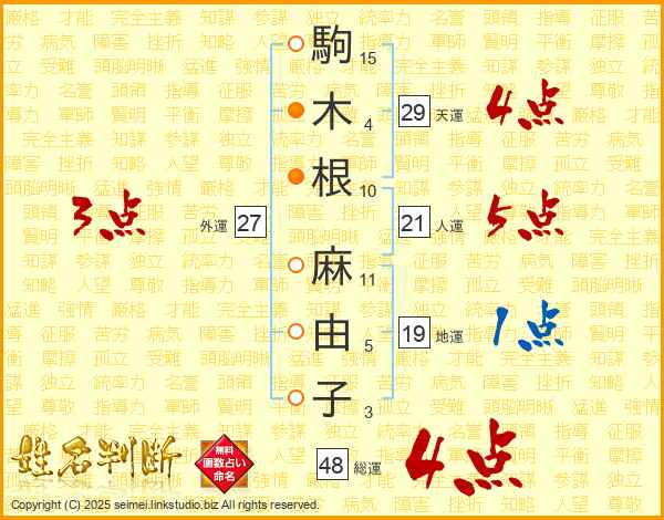 駒木根麻由子さんの総運は48画の4点!