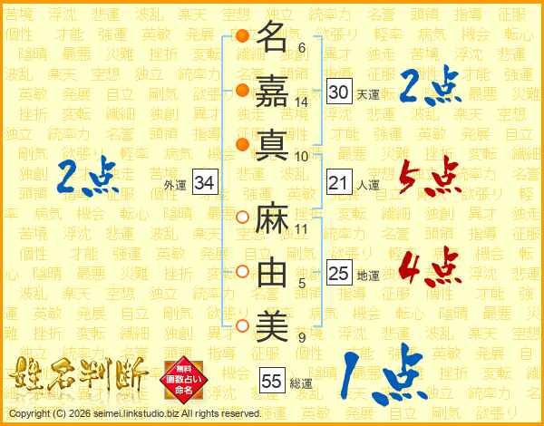 名嘉真麻由美さんの総運は55画の1点!