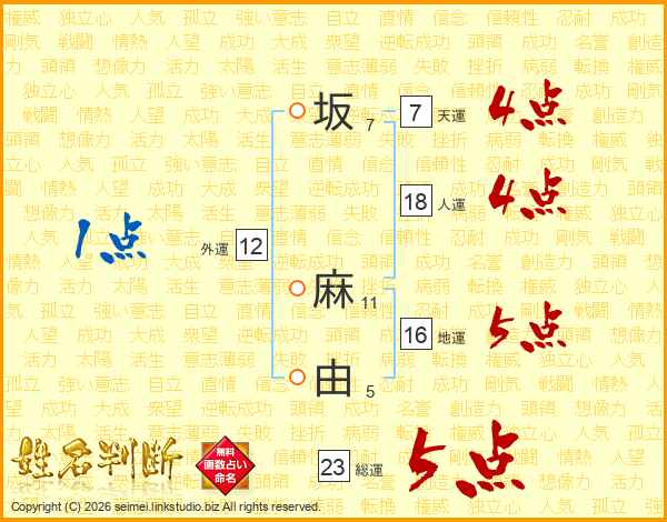 坂麻由さんの総運は23画の5点!