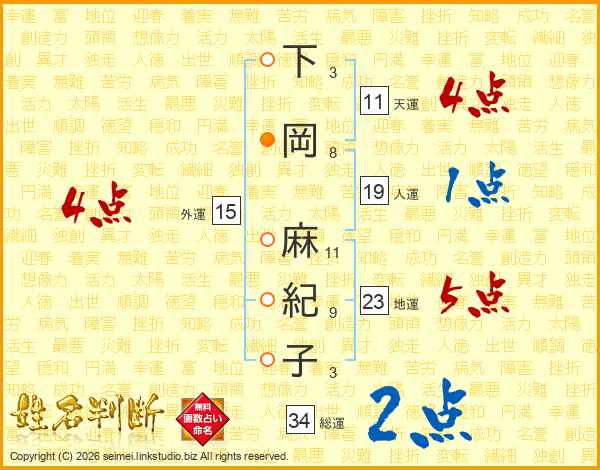 下岡麻紀子さんの総運は34画の2点!