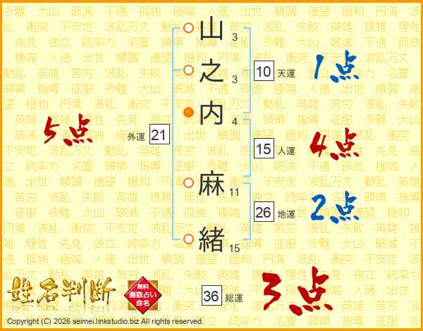 山之内麻緒さんの外運は21画の5点!