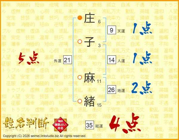 庄子麻緒さんの総運は35画の4点!
