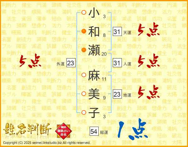 小和瀬麻美子さんの天運は31画の5点!