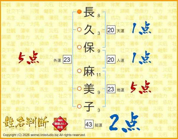 長久保麻美子さんの外運は23画の5点!
