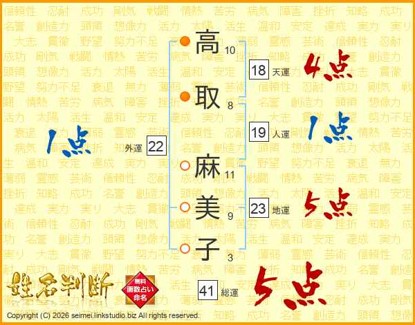 高取麻美子さんの総運は41画の5点!