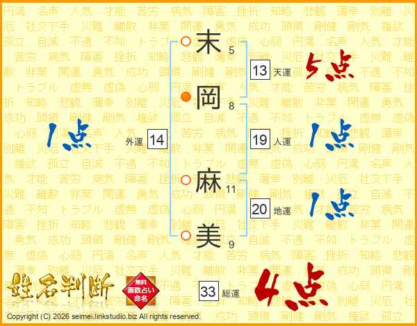 末岡麻美さんの天運は13画の5点!