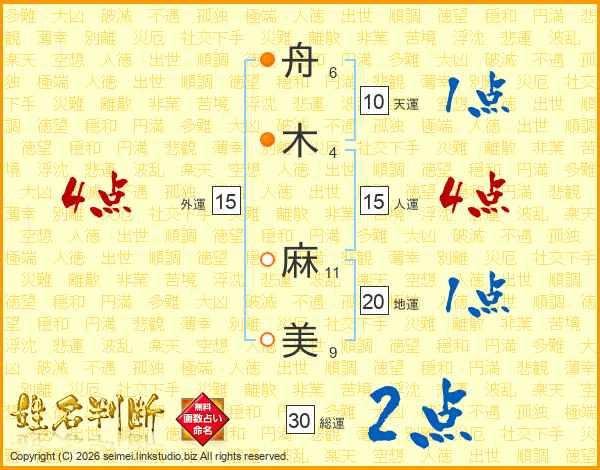 舟木麻美さんの外運は15画の4点!