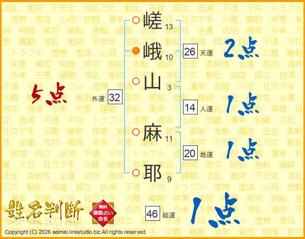 嵯峨山麻耶さんの総運は46画の1点!