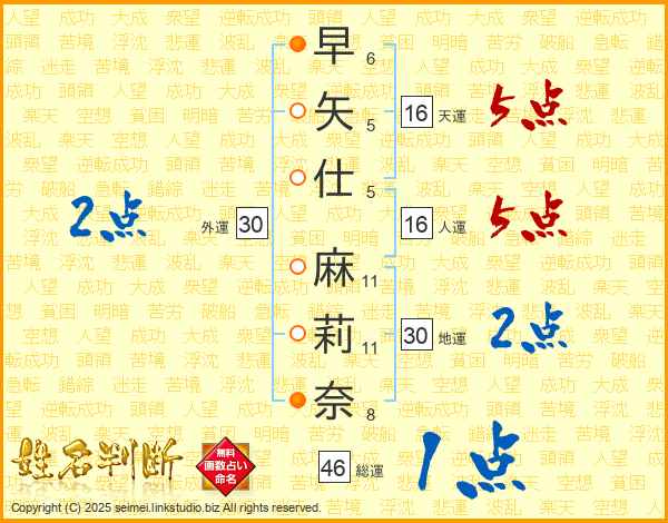 早矢仕麻莉奈さんの天運は16画の5点!
