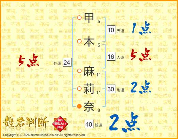 甲本麻莉奈さんの外運は24画の5点!