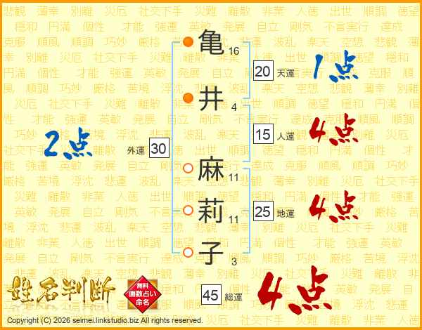 亀井麻莉子さんの総運は45画の4点!