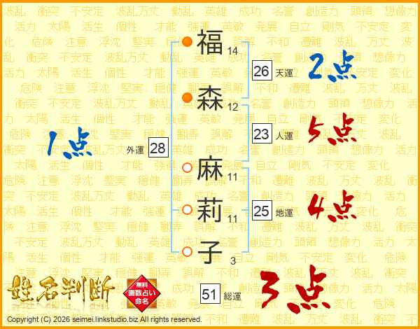 福森麻莉子さんの総運は51画の3点!