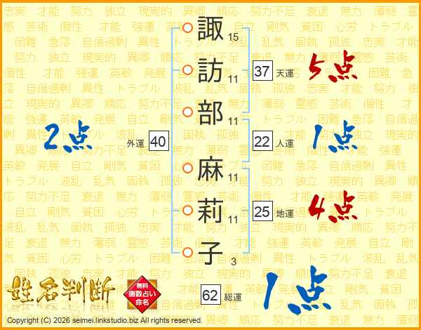 諏訪部麻莉子さんの地運は25画の4点!