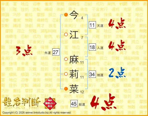 今江麻莉菜さんの総運は45画の4点!