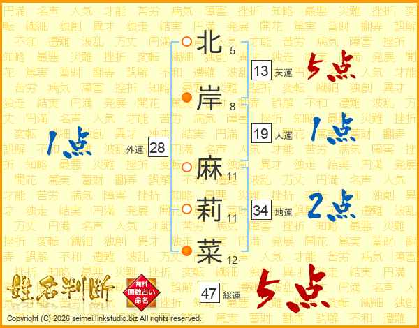 北岸麻莉菜さんの総運は47画の5点!