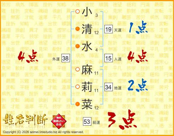 小清水麻莉菜さんの外運は38画の4点!