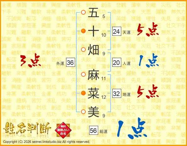 五十畑麻菜美さんの総運は56画の1点!