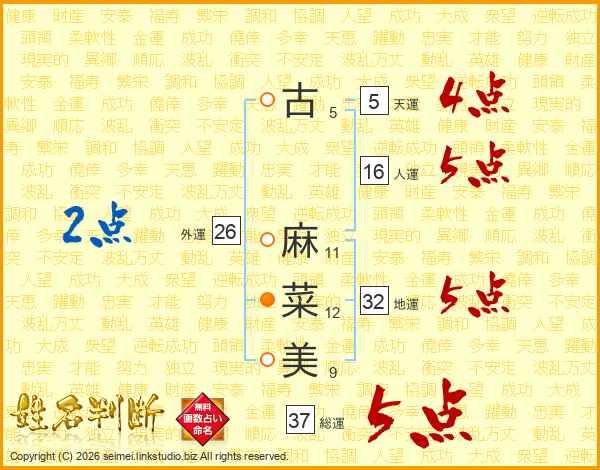 古麻菜美さんの総運は37画の5点!