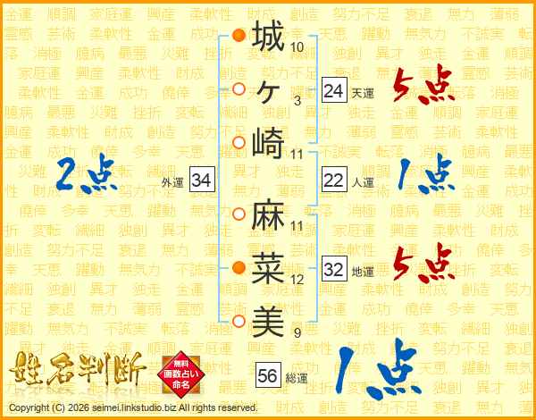 城ヶ崎麻菜美さんの総運は56画の1点!