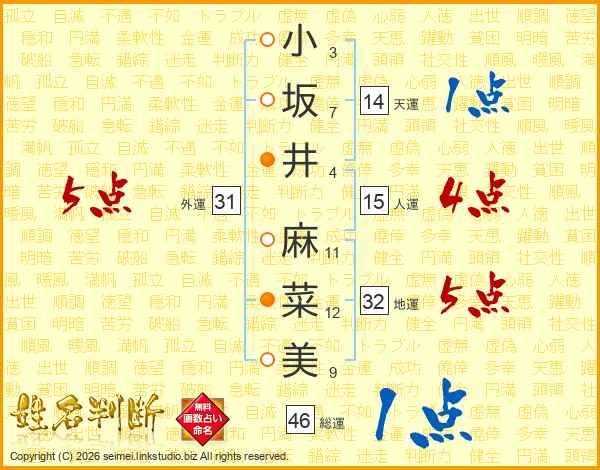 小坂井麻菜美さんの外運は31画の5点!