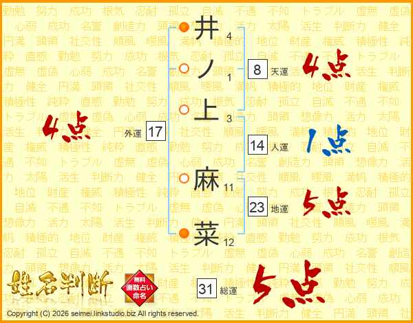 井ノ上麻菜さんの総運は31画の5点!