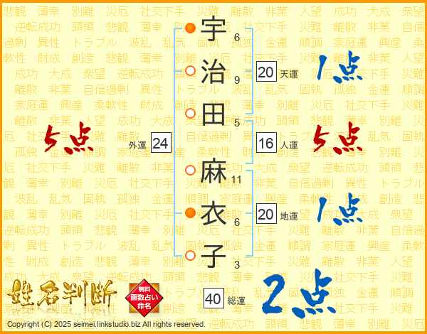 宇治田麻衣子さんの外運は24画の5点!