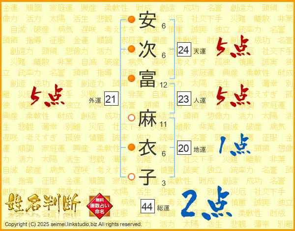 安次富麻衣子さんの総運は44画の2点!