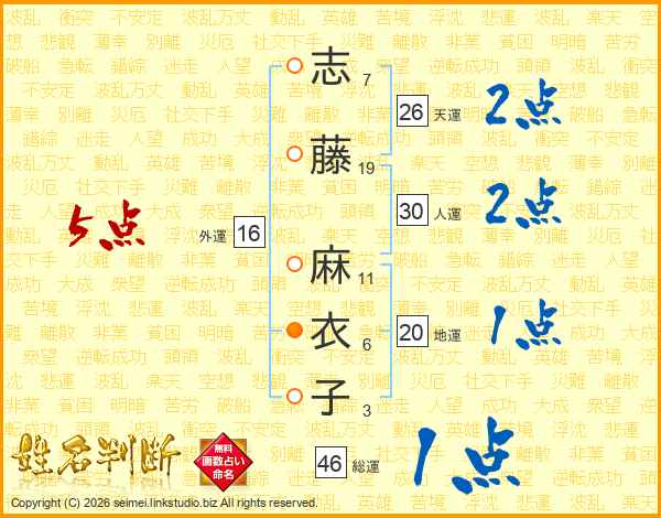 志藤麻衣子さんの総運は46画の1点!