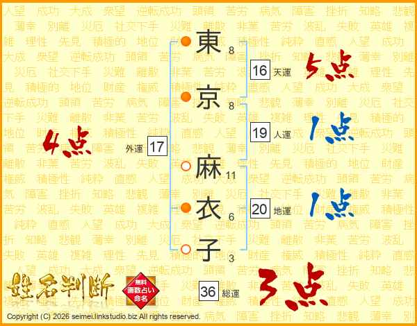 東京麻衣子さんの外運は17画の4点!