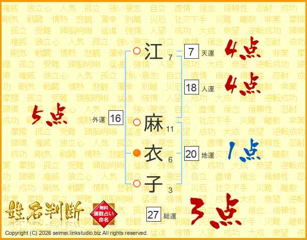 江麻衣子さんの総運は27画の3点!
