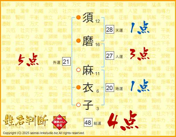 須磨麻衣子さんの総運は48画の4点!