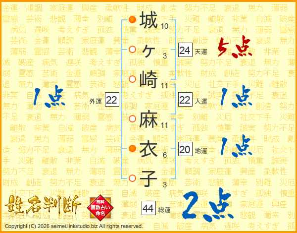 城ヶ崎麻衣子さんの総運は44画の2点!