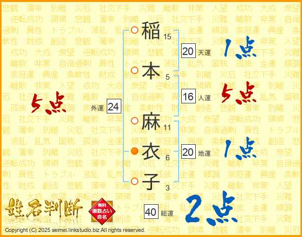 稲本麻衣子さんの外運は24画の5点!