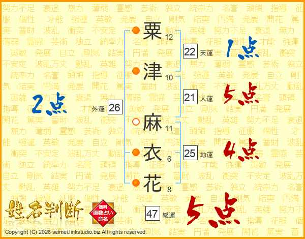 粟津麻衣花さんの総運は47画の5点!