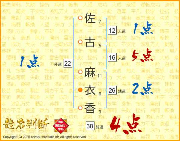 佐古麻衣香さんの総運は38画の4点!