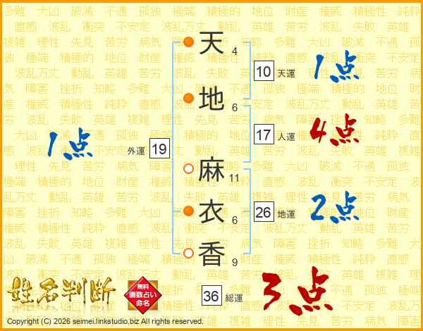 天地麻衣香さんの人運は17画の4点!