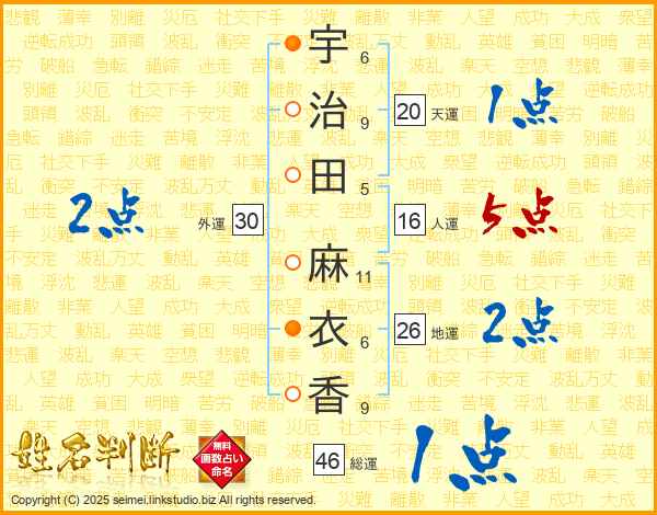 宇治田麻衣香さんの総運は46画の1点!