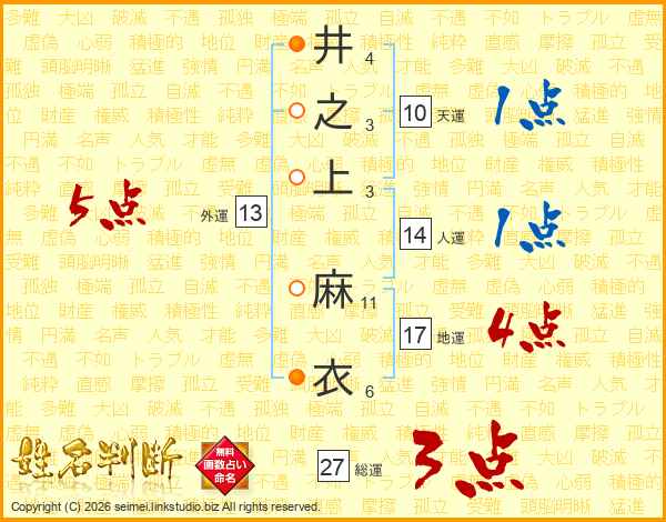 井之上麻衣さんの総運は27画の3点!