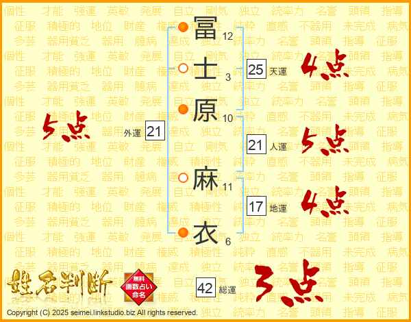 冨(12画)士(3画)原(10画) 麻(11画)衣(6画)