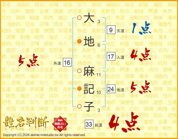 大地麻記子さんの総運は33画の4点!