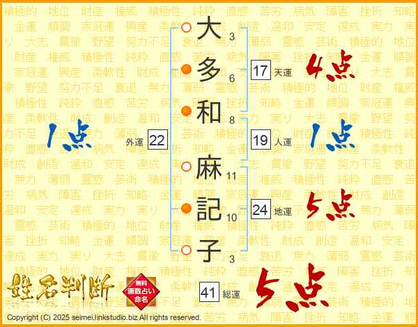 大(3画)多(6画)和(8画) 麻(11画)記(10画)子(3画)