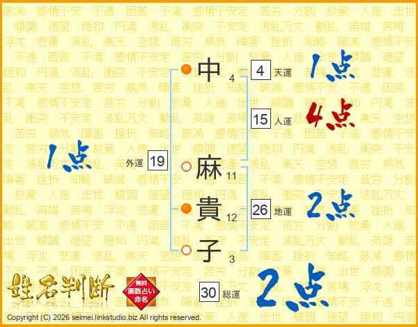 中麻貴子さんの地運は26画の2点!
