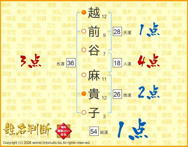 越前谷麻貴子さんの地運は26画の2点!